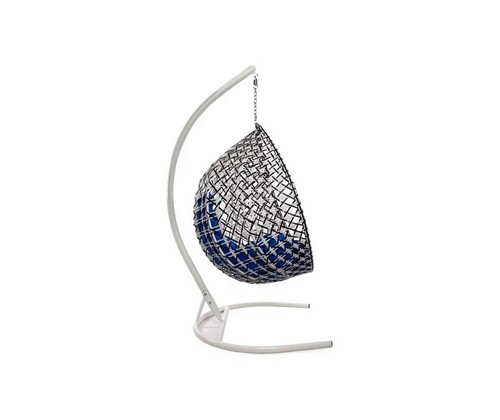 Подвесное кресло Капля Люкс двуцветное с ротангом (белое/черное с синей подушкой)