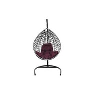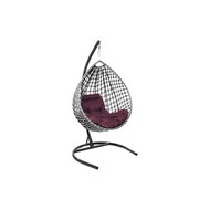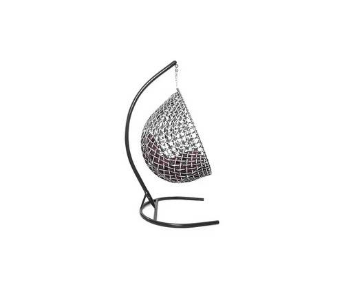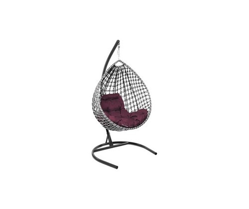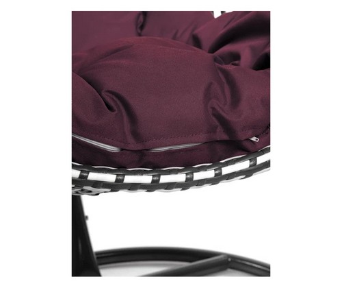 Подвесное кресло Капля Люкс двуцветное с ротангом (черное/белое с бордовой подушкой)