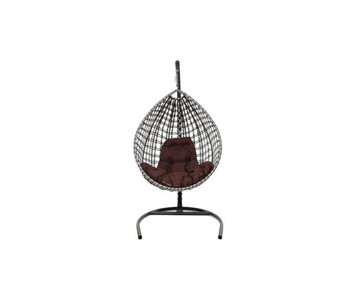 Подвесное кресло Капля Люкс двуцветное с ротангом (черное/белое с коричневой подушкой)