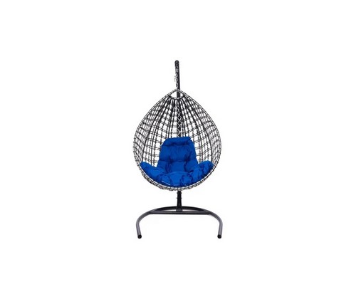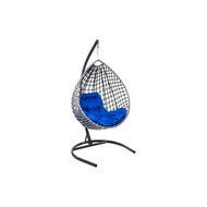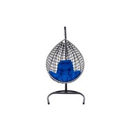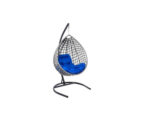 Подвесное кресло Капля Люкс двуцветное с ротангом (черное/белое с синей подушкой)