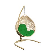 Подвесное кресло Капля Люкс с ротангом (бежевое с зеленой подушкой)