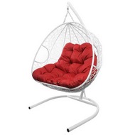 Подвесное кресло Кокон ДЛЯ ДВОИХ ротанг (белый/красный)