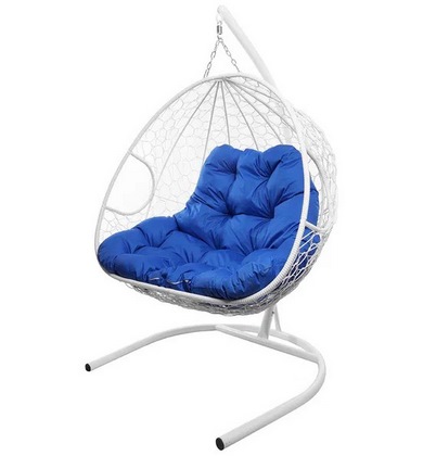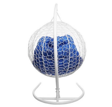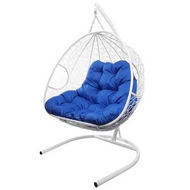 Подвесное кресло Кокон ДЛЯ ДВОИХ ротанг (белый/синий)