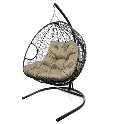 Подвесное кресло Кокон ДЛЯ ДВОИХ ротанг (черный/бежевый)
