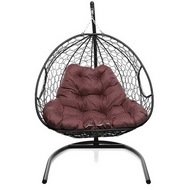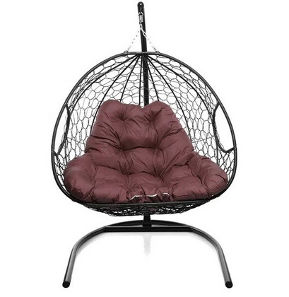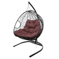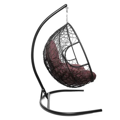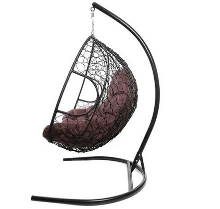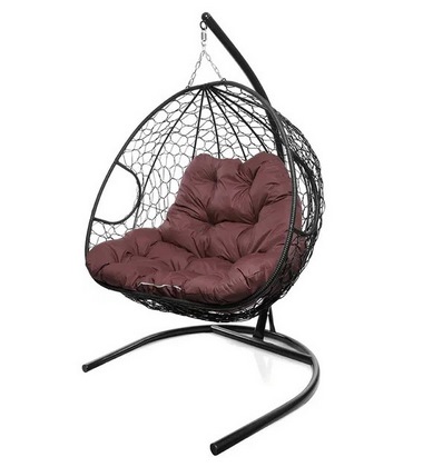 Подвесное кресло Кокон ДЛЯ ДВОИХ ротанг (черный/бордовый)