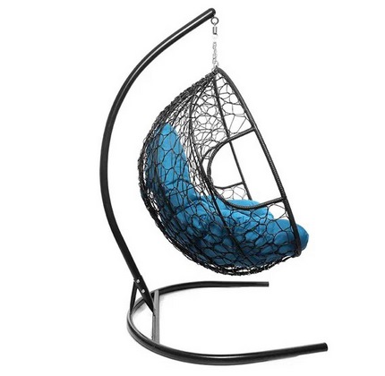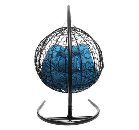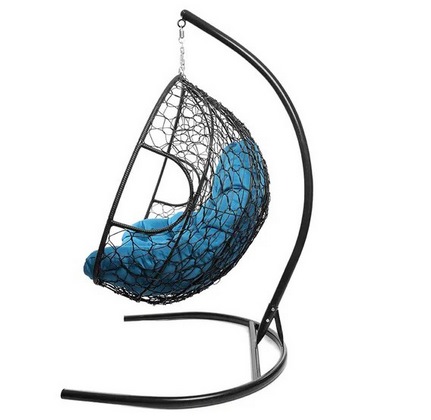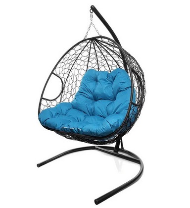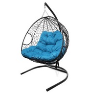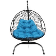 Подвесное кресло Кокон ДЛЯ ДВОИХ ротанг (черный/голубой)
