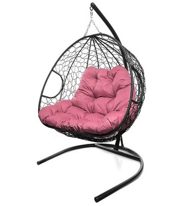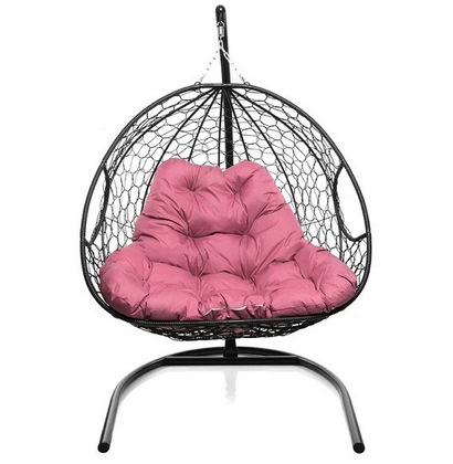 Подвесное кресло Кокон ДЛЯ ДВОИХ ротанг (черный/розовый)