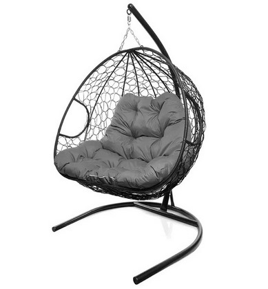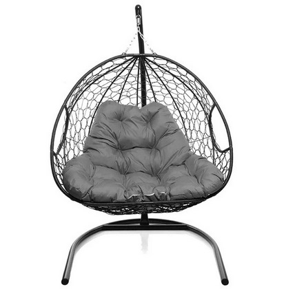 Подвесное кресло Кокон ДЛЯ ДВОИХ ротанг (черный/серый)