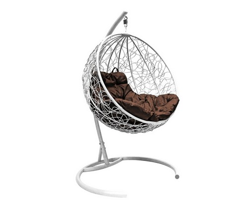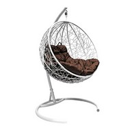 Подвесное кресло кокон Круглое Ротанг (белое с коричневой подушкой)