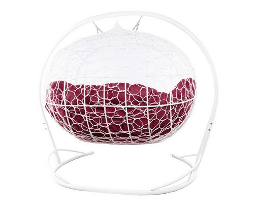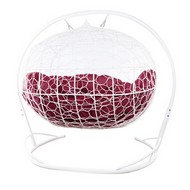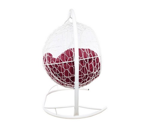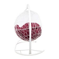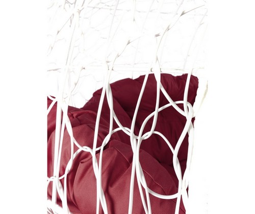 Подвесной диван УЛЕЙ с ротангом (белый с бордовой подушкой)
