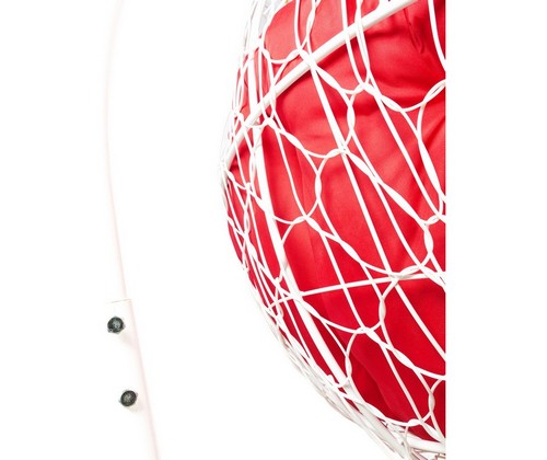 Подвесной диван УЛЕЙ с ротангом (белый с красной подушкой).