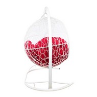 Подвесной диван УЛЕЙ с ротангом (белый с красной подушкой)