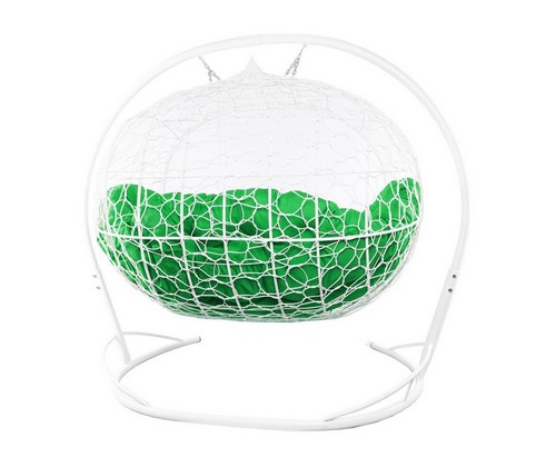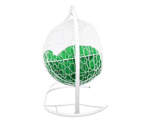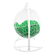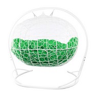 Подвесной диван УЛЕЙ с ротангом (белый с зеленой подушкой)