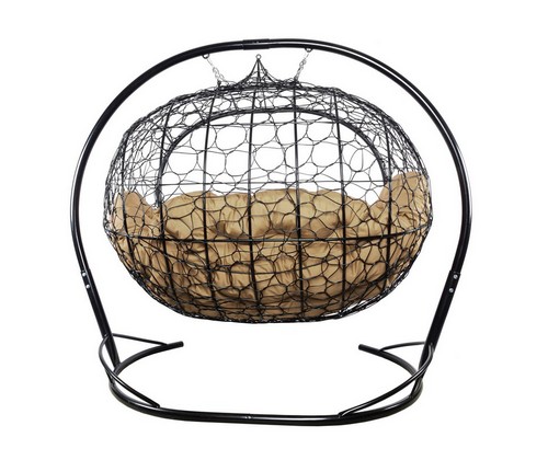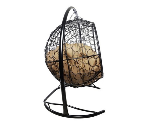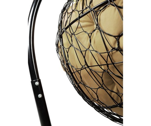 Подвесной диван УЛЕЙ с ротангом (черный с бежевой подушкой)
