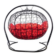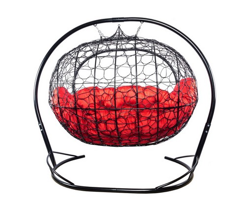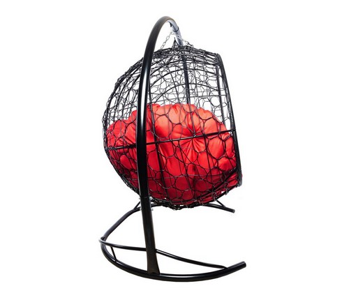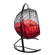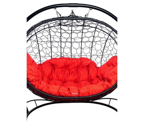 Подвесной диван УЛЕЙ с ротангом (черный с красной подушкой)