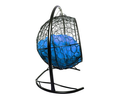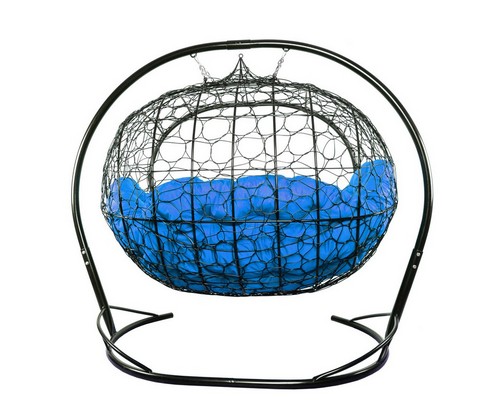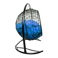 Подвесной диван УЛЕЙ с ротангом (черный с синей подушкой)