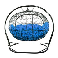 Подвесной диван УЛЕЙ с ротангом (черный с синей подушкой).