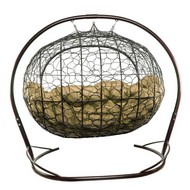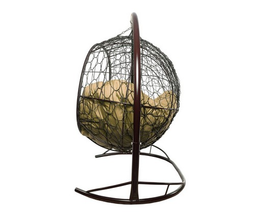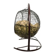 Подвесной диван УЛЕЙ с ротангом (коричневый с бежевой подушкой).