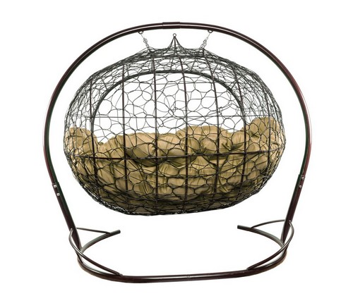Подвесной диван УЛЕЙ с ротангом (коричневый с бежевой подушкой)