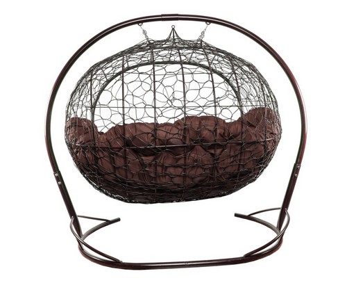 Подвесной диван УЛЕЙ с ротангом (коричневый с коричневой подушкой)