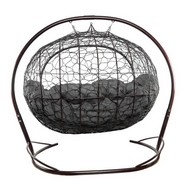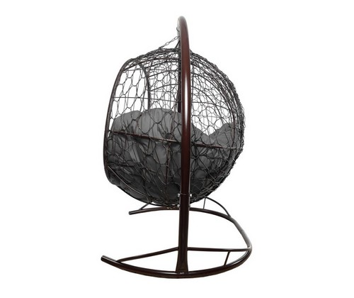 Подвесной диван УЛЕЙ с ротангом (коричневый с серой подушкой).