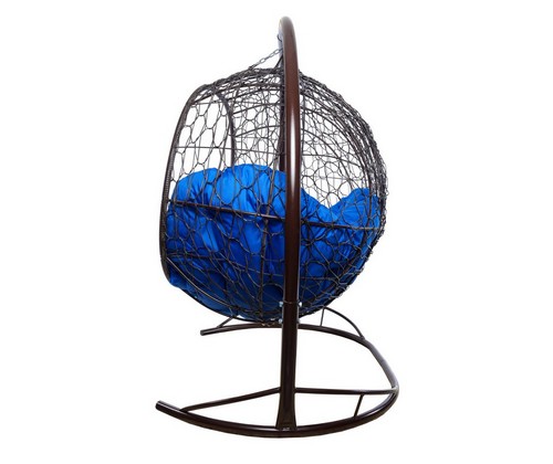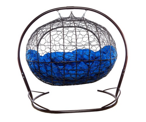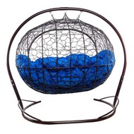 Подвесной диван УЛЕЙ с ротангом (коричневый с синей подушкой).