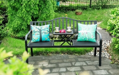 Садовая скамейка из стали Паркер (Parker) с выдвижным столиком