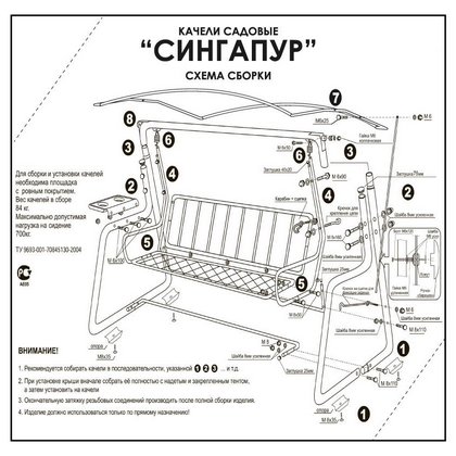 Качели оснащены держателем крыши, мягким сиденьем и подлокотниками.