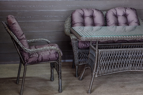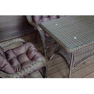 Особенности: Садовый комплект из искусственного ротанга Мэдисон Нью Lunch set отлично впишется в любой интерьер. Можно удобно разместиться с друзьями или всей семьёй. Отлично подойдёт для комфортного отдыха на свежем воздухе. Несмотря на кажущуюся хрупкой конструкцию, выдерживает довольно большой вес. Не требует особого ухода. Состоит из дивана, двух кресел с подушками на сиденье и стола. Стекло на присосках. Вес дивана - 8,7 кг, кресла - 5,8 кг, стола - 26 кг.