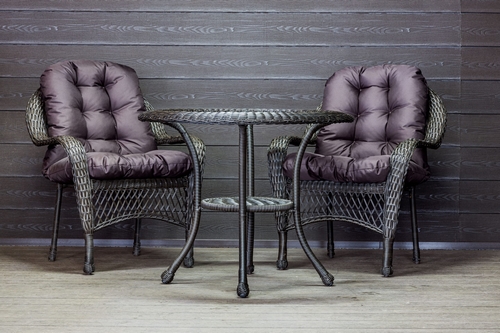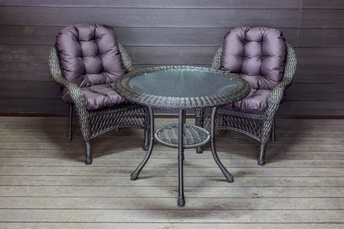 Садовый комплект из искусственного ротанга Мэдисон Нью стол круглый и 2 кресла с подушками на сиденье и спинку