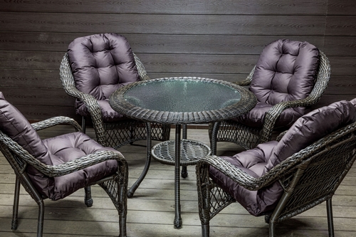 Садовый комплект из искусственного ротанга Мэдисон Нью стол круглый и 4 кресла с подушками на сиденье и спинку