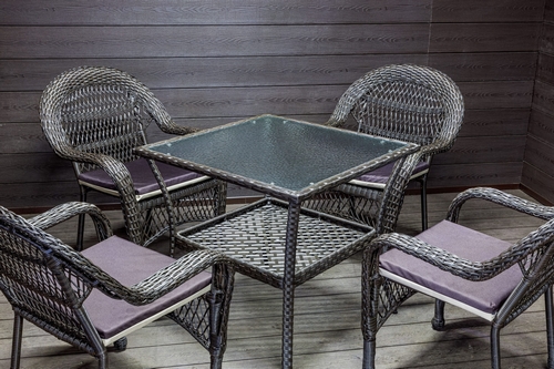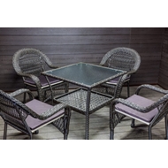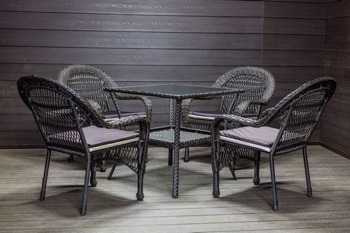 Особенности: Садовый комплект Мэдисон Нью из искусственного ротанга, состоит из квадратного стола и четырёх кресел с подушками на сиденье. Станет прекрасным дополнением для любого двора или террасы. Прост в уходе и чистке. Долговечен и прочен. Выдерживает большой вес. Позволит с удобством перекусить на свежем воздухе вдвоём. Не боится ни солнца, ни дождя. Стойкий к перепадам температур.
