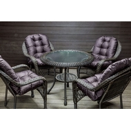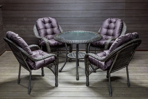 Особенности: Садовый комплект Мэдисон Нью из искусственного ротанга, состоит из квадратного стола, четырёх кресел с подушками на сиденье и спинку. Станет прекрасным дополнением для любого двора или террасы. Прост в уходе и чистке. Долговечен и прочен. Выдерживает большой вес. Позволит с удобством перекусить на свежем воздухе вдвоём. Не боится ни солнца, ни дождя. Стойкий к перепадам температур. Подушки просты в стирке и уходе.
