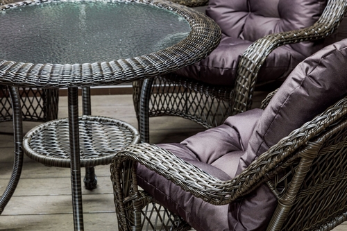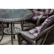Материалы: Каркас - сталь, плетение - искусственный ротанг, столешница - стекло.