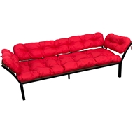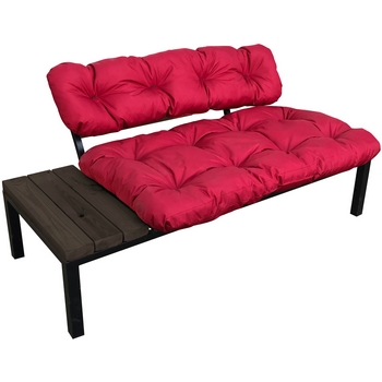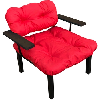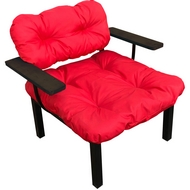Цветовое исполнение: чёрный каркас, дерево - натуральный, красные подушки.