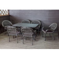 Особенности: Обеденная группа Madison New представляет собой элегантный комплект мебели для обеденной зоны. В набор входит прямоугольный стол и шесть кресел с подушками на сиденье. Удобное место для приема пищи или проведения различных мероприятий с семьёй и друзьями. Прекрасно впишется в любой интерьер дачного дома, участка и т.д. Вес кресла: 5,8 кг.