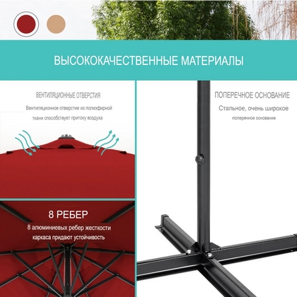 Большой зонт D400 Биг (Big) с крестообразным основанием для установки на открытом воздухе, в саду или на пляже, летнем кафе или в зоне отдыха.