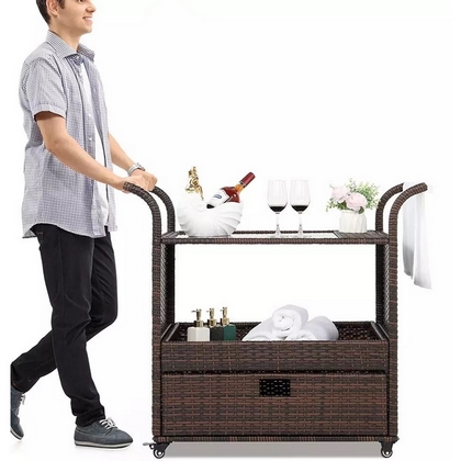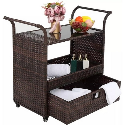 Сервировочный стол с баром из ротанга Винкелваген (Winkelwagen) brown