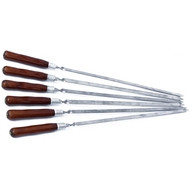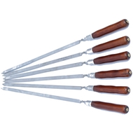 Дополнительная информация: шампур из нержавеющей стали с деревянной ручкой. Используется для приготовления классического шашлыка. Материал рукояти береза, покрытие ручки олифа. На ручке изделия находится алюминиевое кольцо, в которое вставлен шампур, оно не позволит расколоться ручке при длительной эксплуатации. Шампур и рукоятка соеденены сквозной заклепкой, для исключения выпадения.