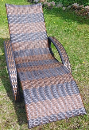 Шезлонг Ницца на стальном каркасе с плоским плетением из искусственного ротанга.