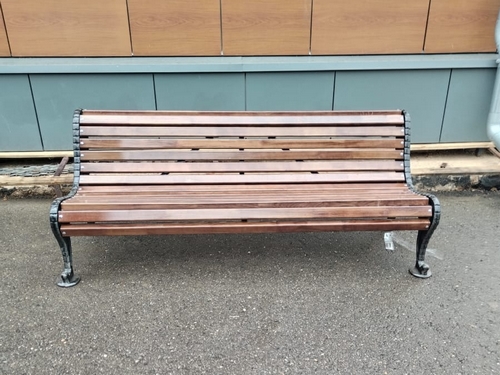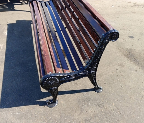 Скамейка выполнена из высокопрочного чугунного сплава и обшита ангарской сосной (60х40 мм).