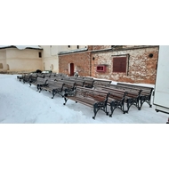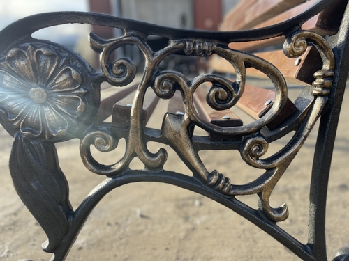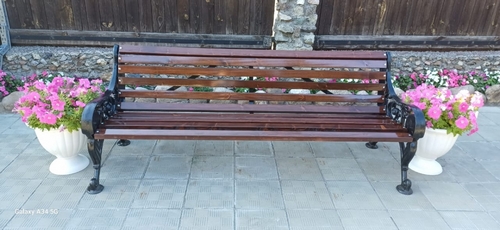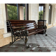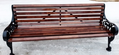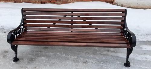 Скамейка выполнена из высокопрочного чугунного сплава и бруса 60х40 мм в цвете палисандр.