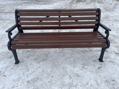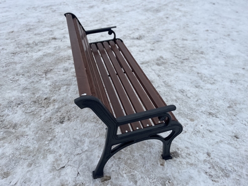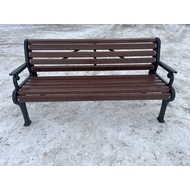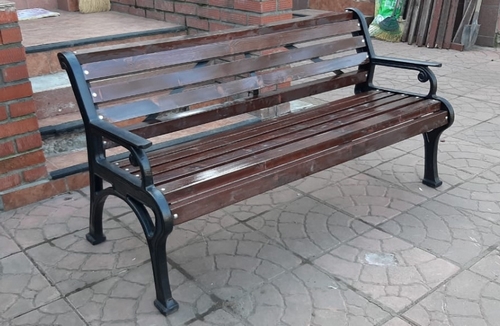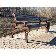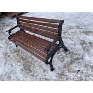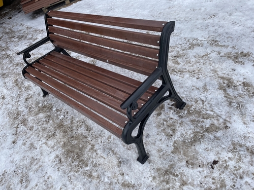 Скамейка выполнена из высокопрочного чугунного сплава и бруса 60х40 мм в цвете палисандр.