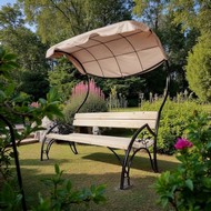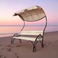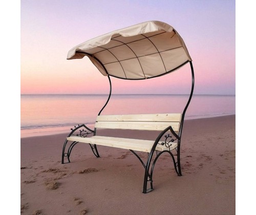 Цветовое исполнение: каркас - черный, сиденье и спинка - дерево, тент - бежевый.