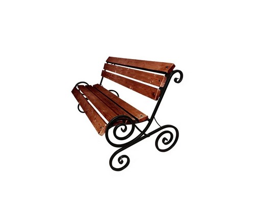 Скамейка декорирована коваными элементами.