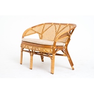 Каркас - натуральный ротанг, подушка - ткань рогожка с мягким наполнителем.