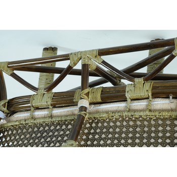 Каркас - натуральный ротанг, подушка - ткань рогожка с мягким наполнителем.