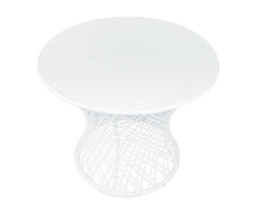 Плетеная фактура придает столу природное очарование и визуальную легкость.