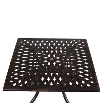 Стол выполнен из металла, имеет прочную и надежную конструкцию.