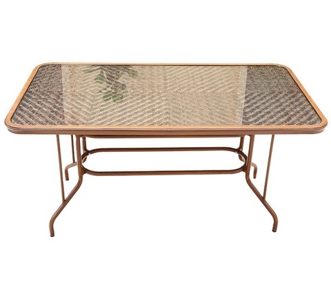 Прямоугольный алюминиевый стол с плетением из искусственного ротанга.